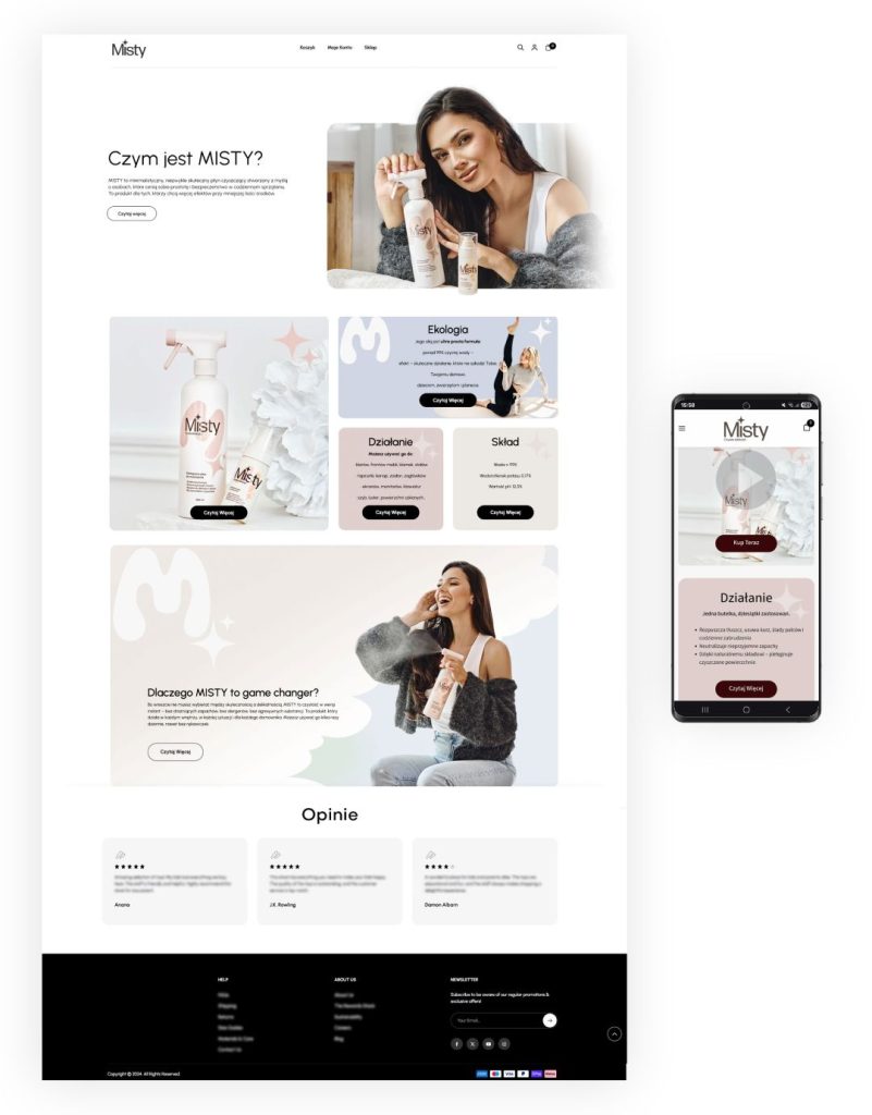 Otrzymaliśmy od klienta logotyp i zdjęcia produktu i na tej podstawie zaprojektowaliśmy i wdrożyliśmy na silniku Woocommerce sklep internetowy www.misty.com.pl